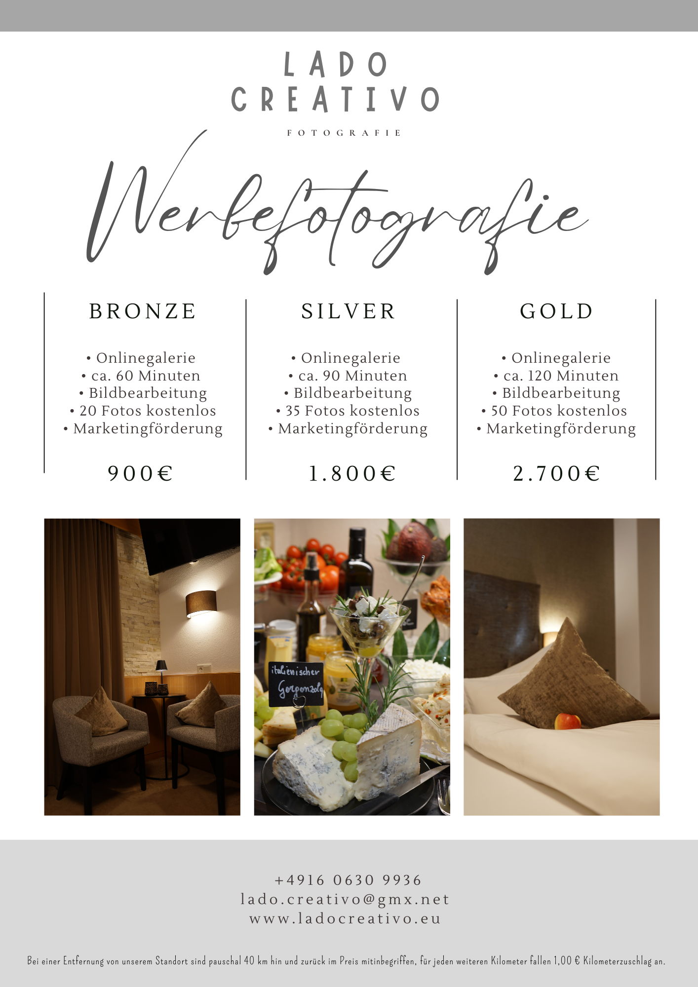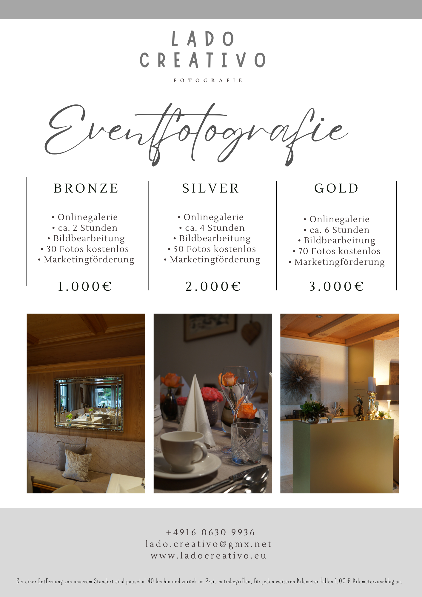 Für besondere oder andere Arten von Fotografien die nicht aufgelistet sind, gerne anschreiben, um eine Preisauflistung zu erhalten. Zudem bieten wir auch Vertragsoptionen zum Thema Werbe- und Eventfotografie für Firmen an.